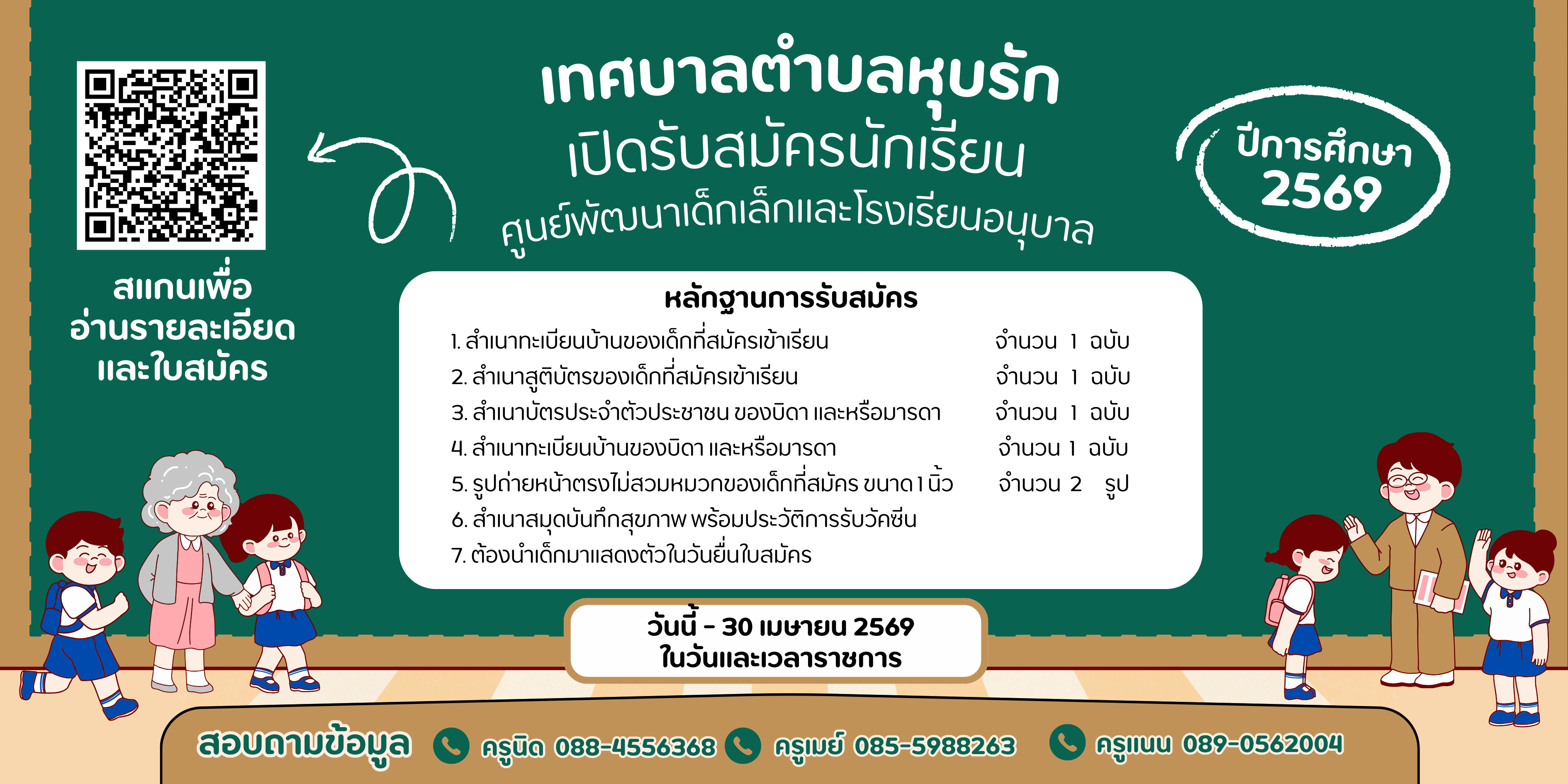 และโรงเรียนอนุบาลฯ ในวันและเวลาราชการ ตั้งแต่วันนี้ ถึง 30 เมษายน 2569