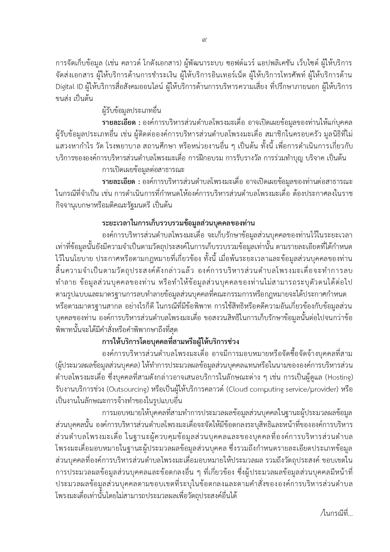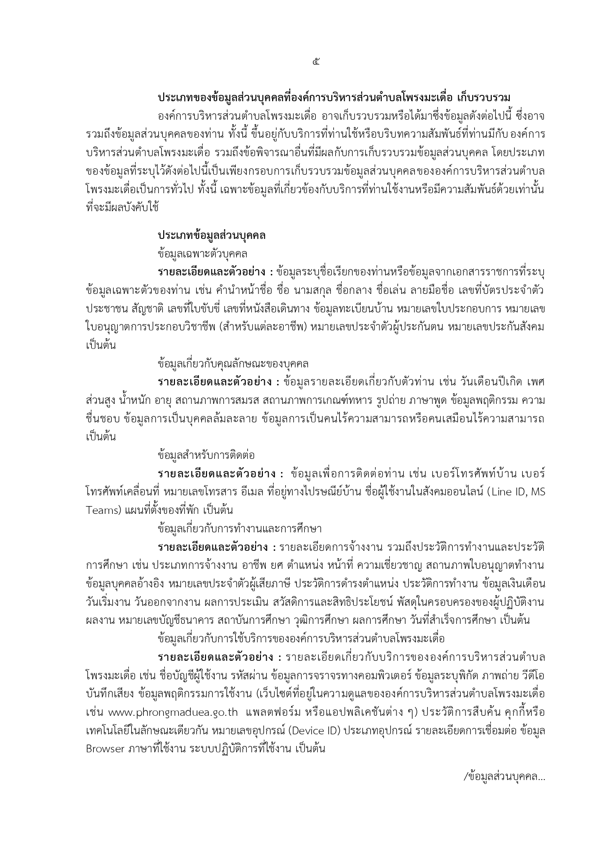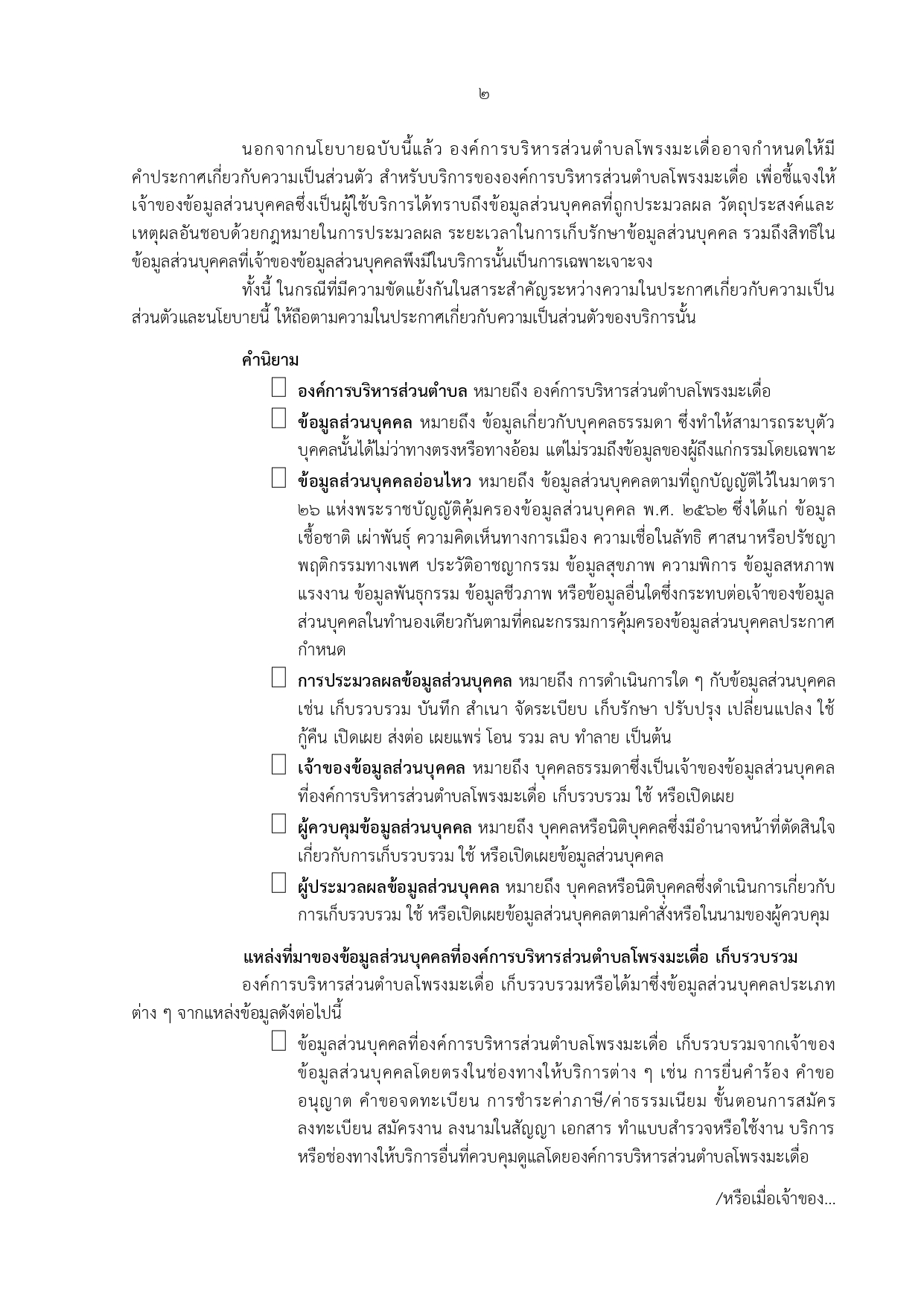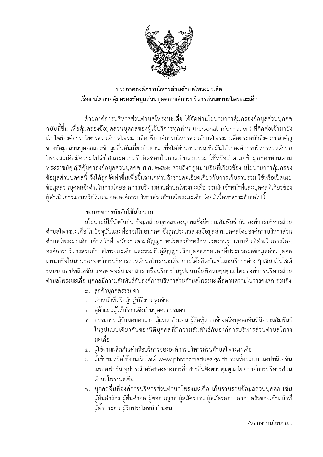 นโยบายคุ้มครองข้อมูลส่วนบุคคล