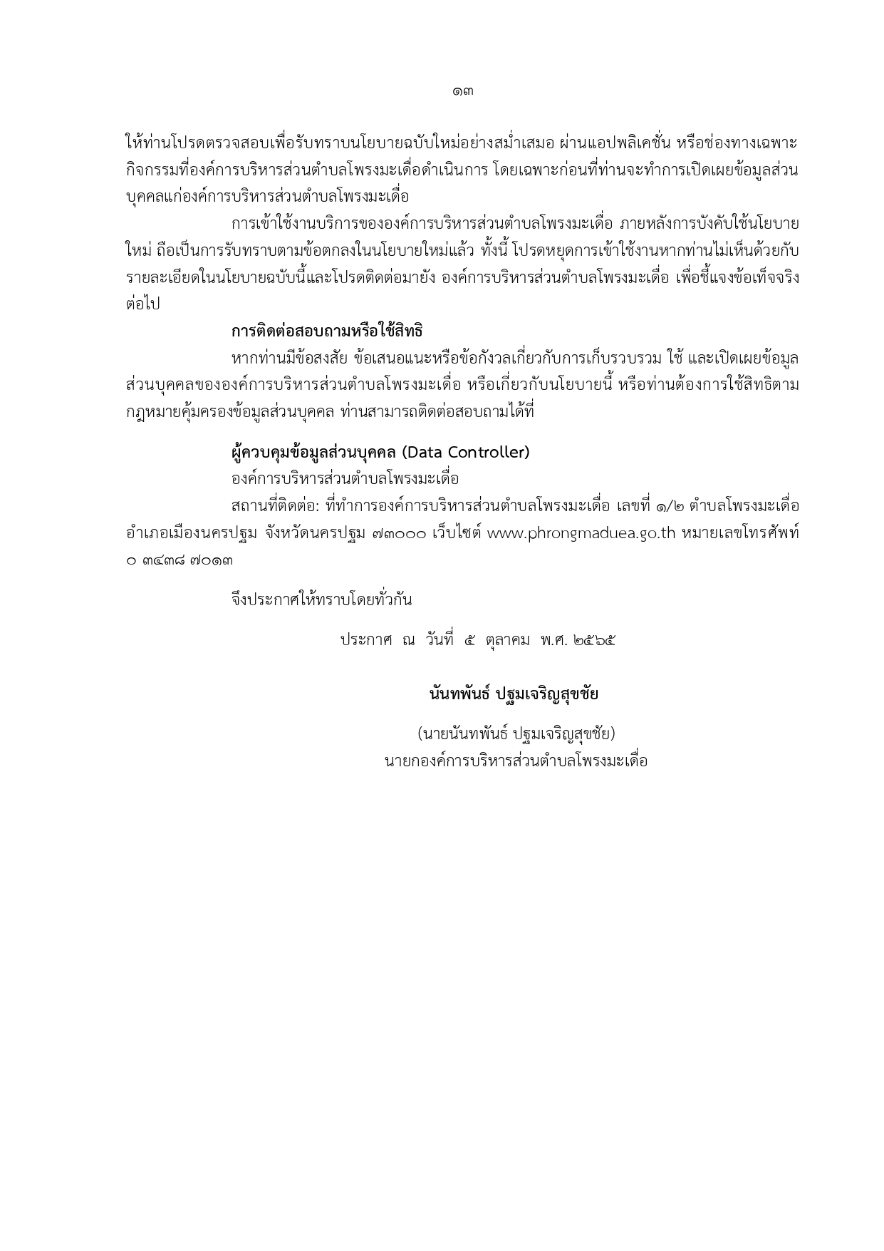 องค์การบริหารส่วนตำบลโพรงมะเดื่อ อำเภอเมืองฯ จังหวัดนครปฐม โทร. 0-3438-7013
