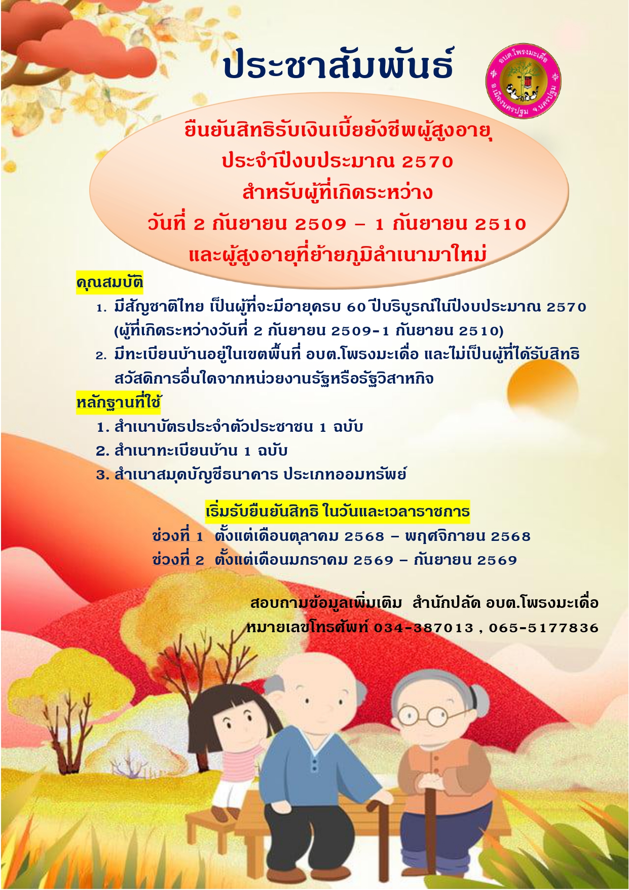 ยืนยันสิทธิรับเงินเบี้ยยังชีพผู้สูงอายุ ปีงบประมาณ 2570